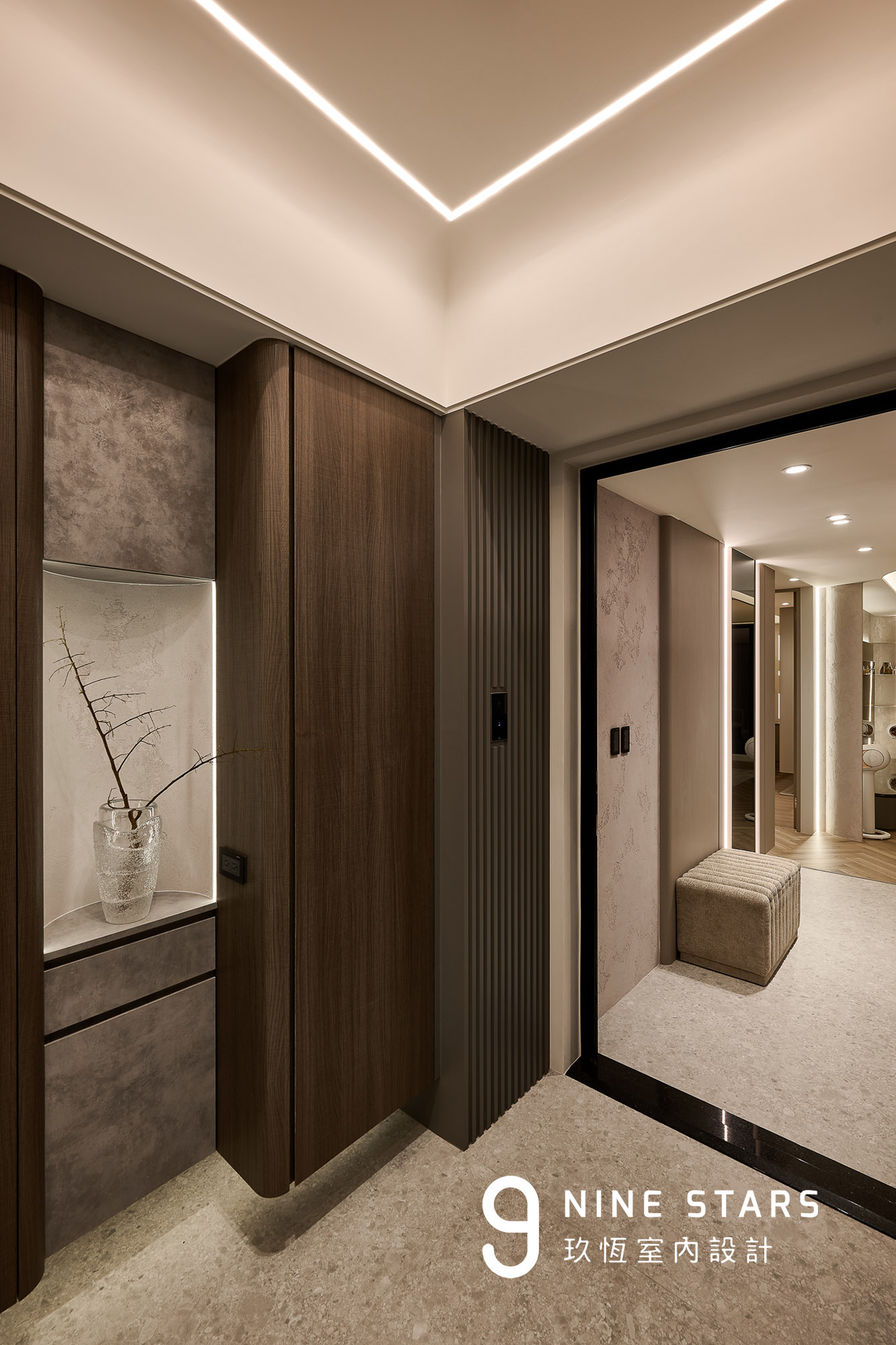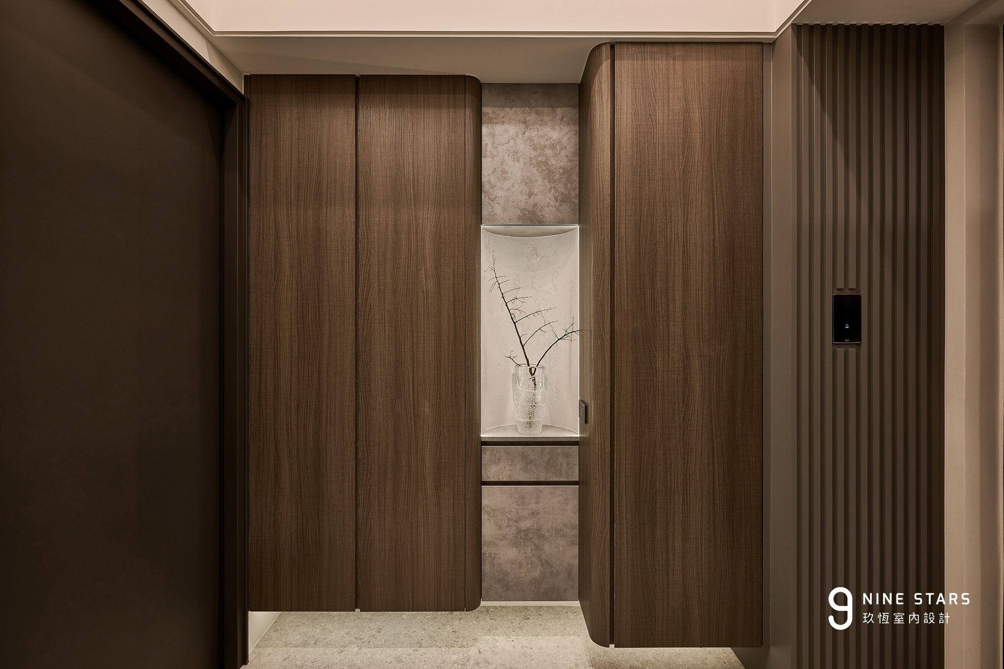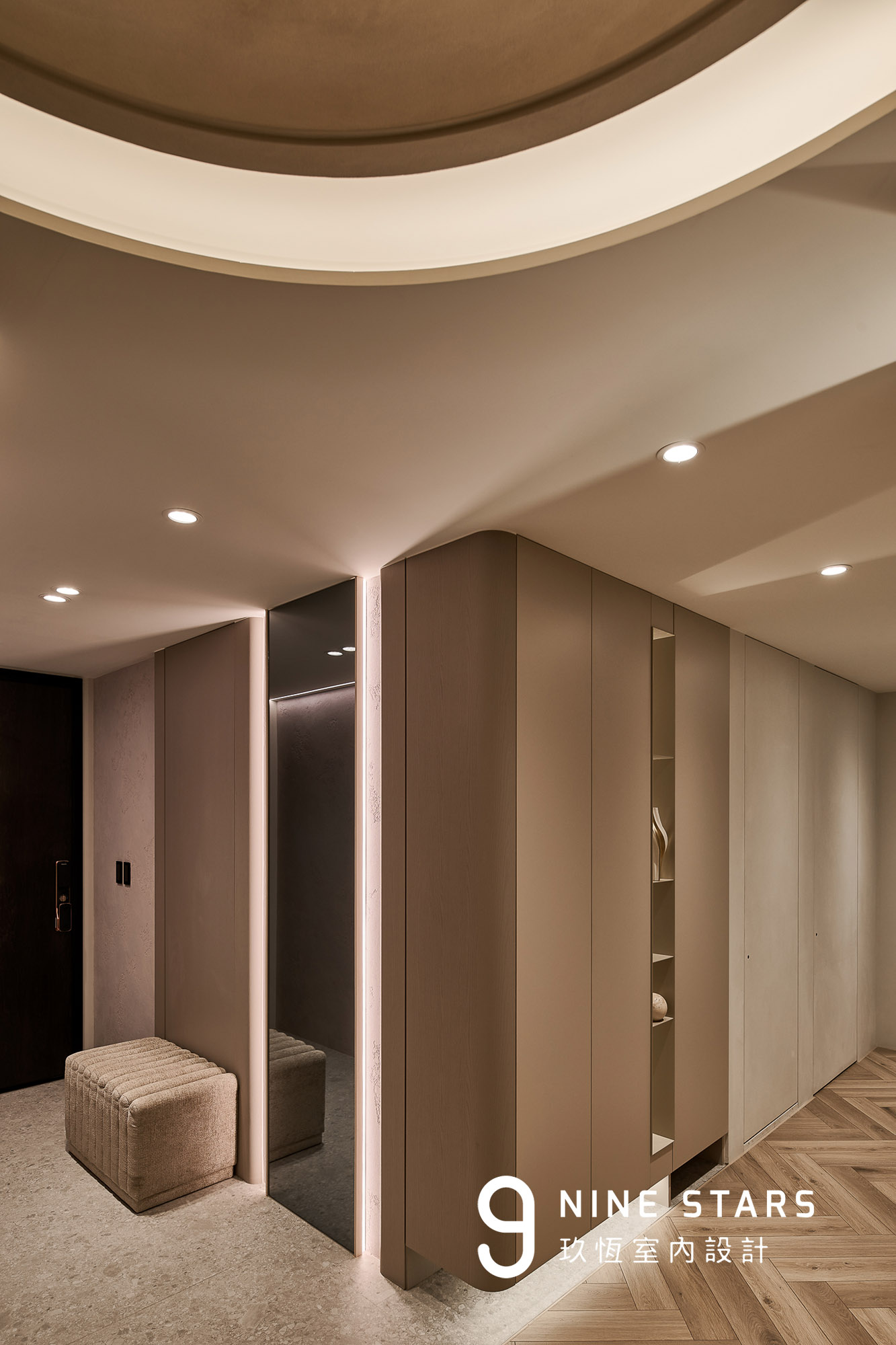 在這條短短玄關裡,每一道弧線、每一次虛化,都是設計師留給日常生活的溫柔,迎接用愛灌溉返家序幕新篇章。