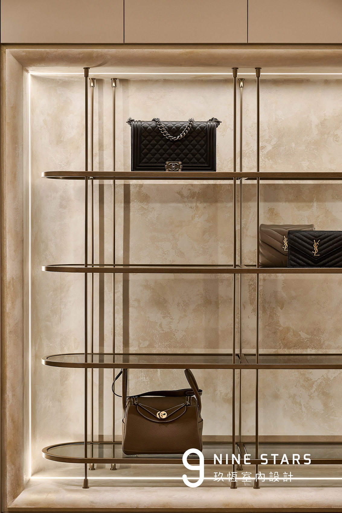 - 內嵌燈條洗亮每一層,包包彷彿站在舞台上