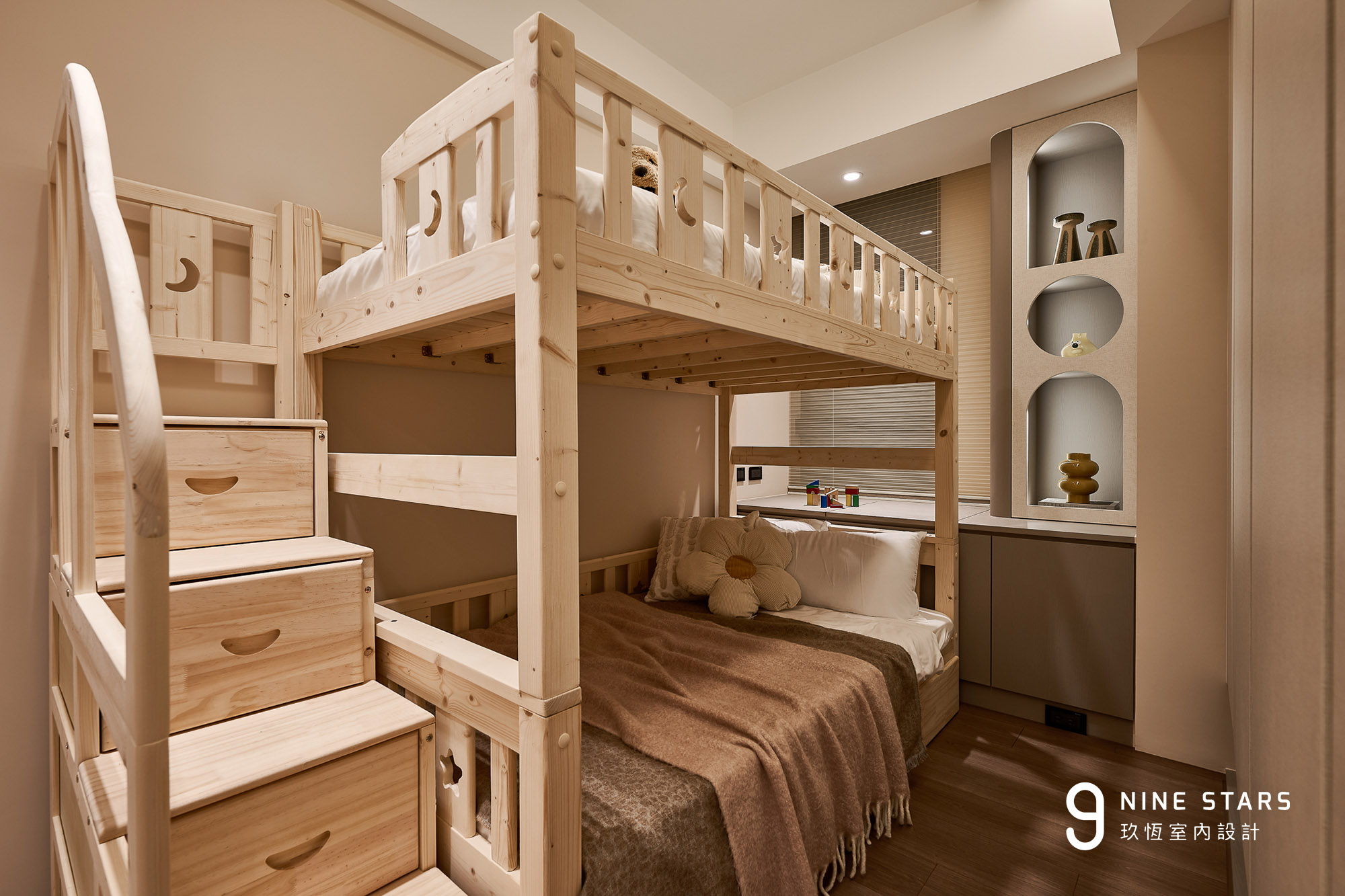 - 上下舖設計:兩位年幼孩子共享一室,以上下舖節省空間、提升實用性。
