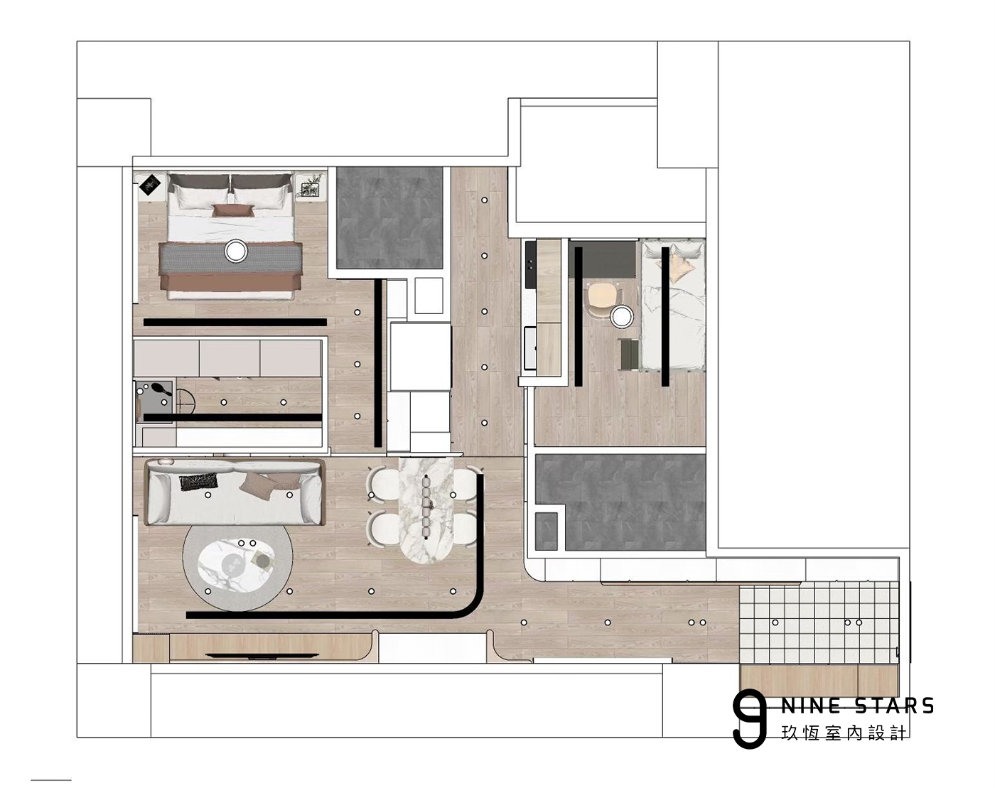 - 標準化收納則交由系統櫃完成,穩定品質並控制預算