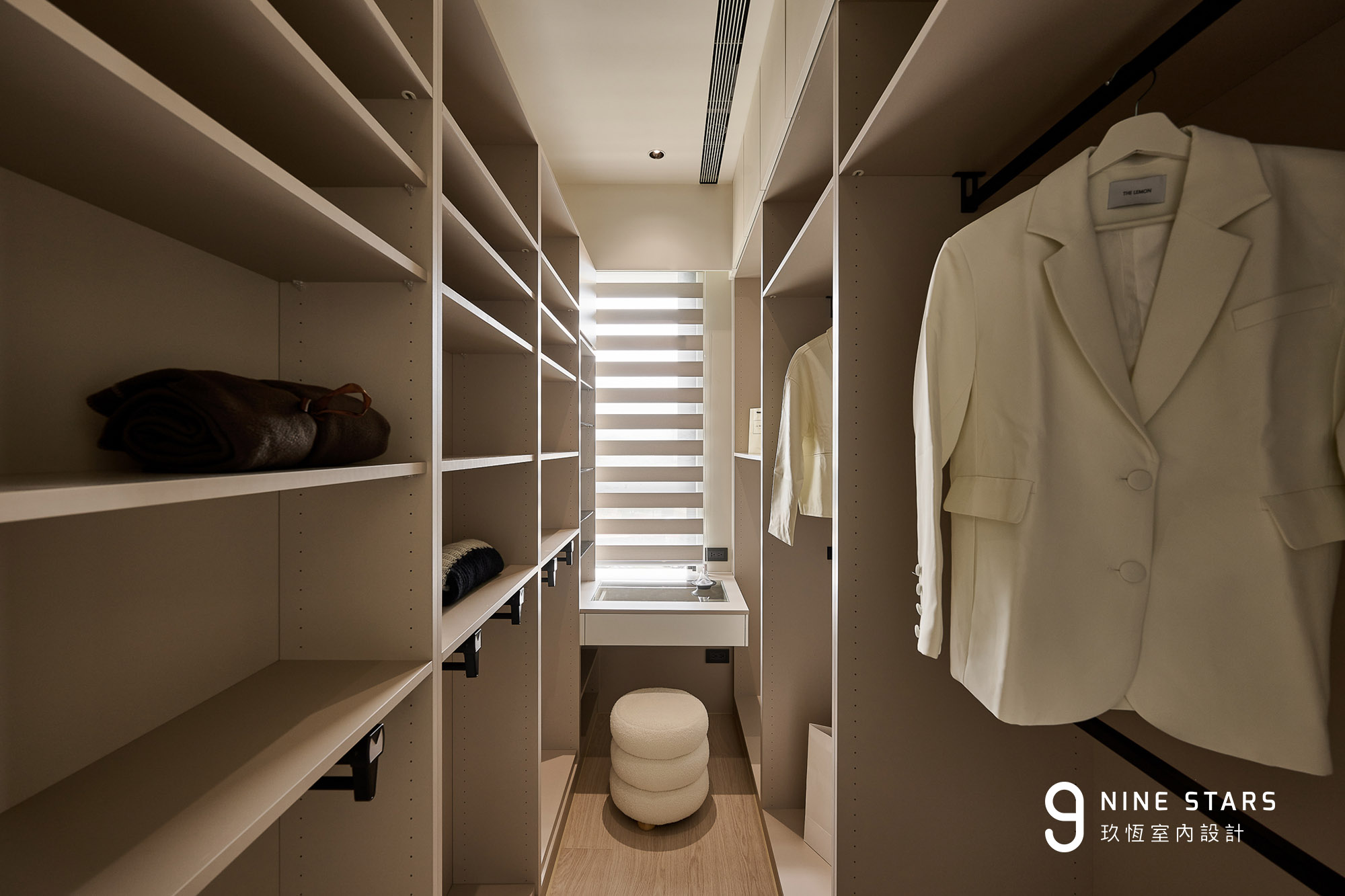 圖|更衣室選用調光簾,在自然採光與隱私之間取得平衡,成為女主人日常整理心緒、沉澱情緒的小角落。